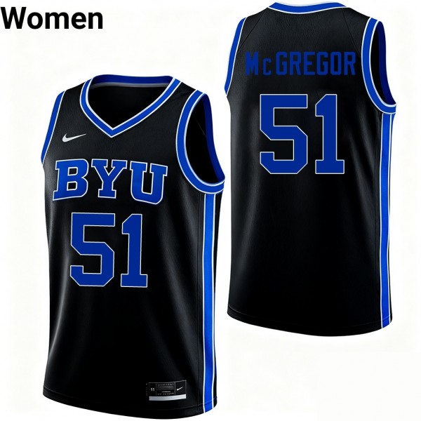 #51 Jared McGregor BYU Black Women Jersey Alumni College Basketball 343181-566